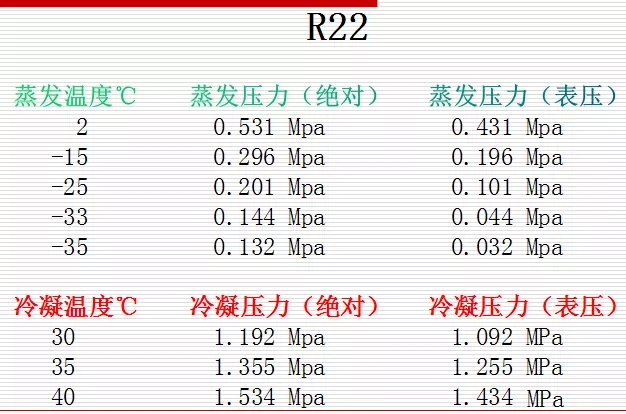 4、制冷劑溫度壓力對(duì)照表: