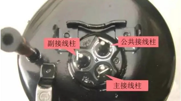 萬用表的歐姆檔(一般200歐姆的檔位)測量每兩點(diǎn)之間的電阻值,阻值大的兩點(diǎn)(BC)為啟動和運(yùn)轉(zhuǎn)繞組。剩的那個點(diǎn)(A)是公共點(diǎn)。然后把所測量的兩個點(diǎn)(BC)再分別跟公共端連接,阻值較大的是啟動繞組,小的為運(yùn)轉(zhuǎn)繞組。三點(diǎn)之間阻值關(guān)系為:BC=AB+AC。