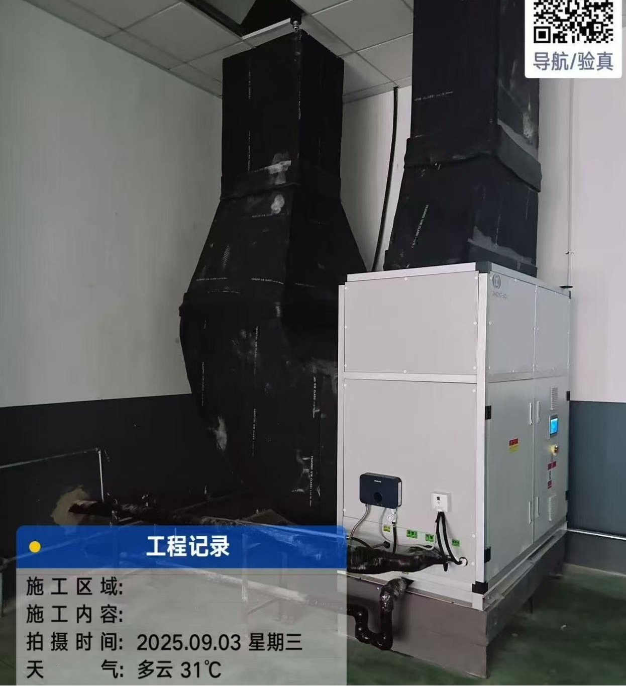 該項(xiàng)目對(duì)廠房溫濕度有較高的要求,房間內(nèi)有風(fēng)機(jī)盤管降溫,溫度20℃, 精度±2.0℃,濕度65%, 精度±2% 。為滿足這一需求,我司為廠房設(shè)置了一套變頻恒溫恒濕機(jī)組系統(tǒng),并選用了變頻風(fēng)冷恒溫恒濕機(jī)組HF45WBP作為主備設(shè)備。