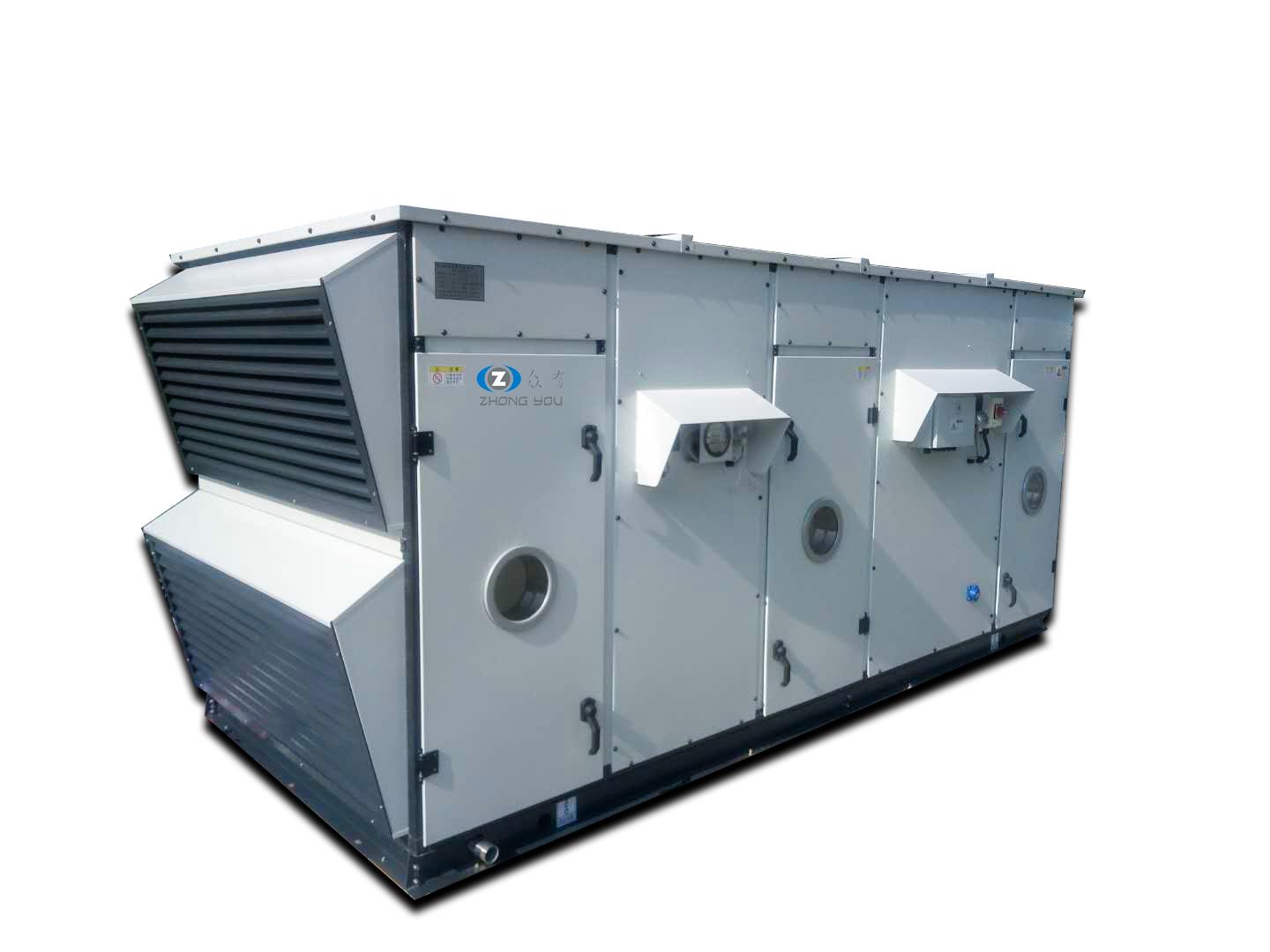 將室外的新鮮空氣經(jīng)處理后送入封閉區(qū)域、房間的機(jī)組,其蒸發(fā)器進(jìn)風(fēng)方式為全部新風(fēng)(或者新風(fēng)量占總送風(fēng)量50%以上的也可以參考本規(guī)范),特點(diǎn)是工況惡劣、工況變化大。此類機(jī)組包括制冷、制熱、加濕、除濕、通風(fēng)、潔凈等功能。其目的是為了配合回風(fēng)機(jī)組,對房間工況進(jìn)行調(diào)節(jié),一般精度要求不高。