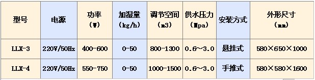 加濕器的工作水壓為 0.6-3.0MPa, 加濕器所需要的水源為潔凈的自來水 ; 現(xiàn)場(chǎng)需提供 DN15 的供水管和 電源為 220V/50HZ 的三芯插座 , 水源和電源均需引到距離加濕器安裝位置
